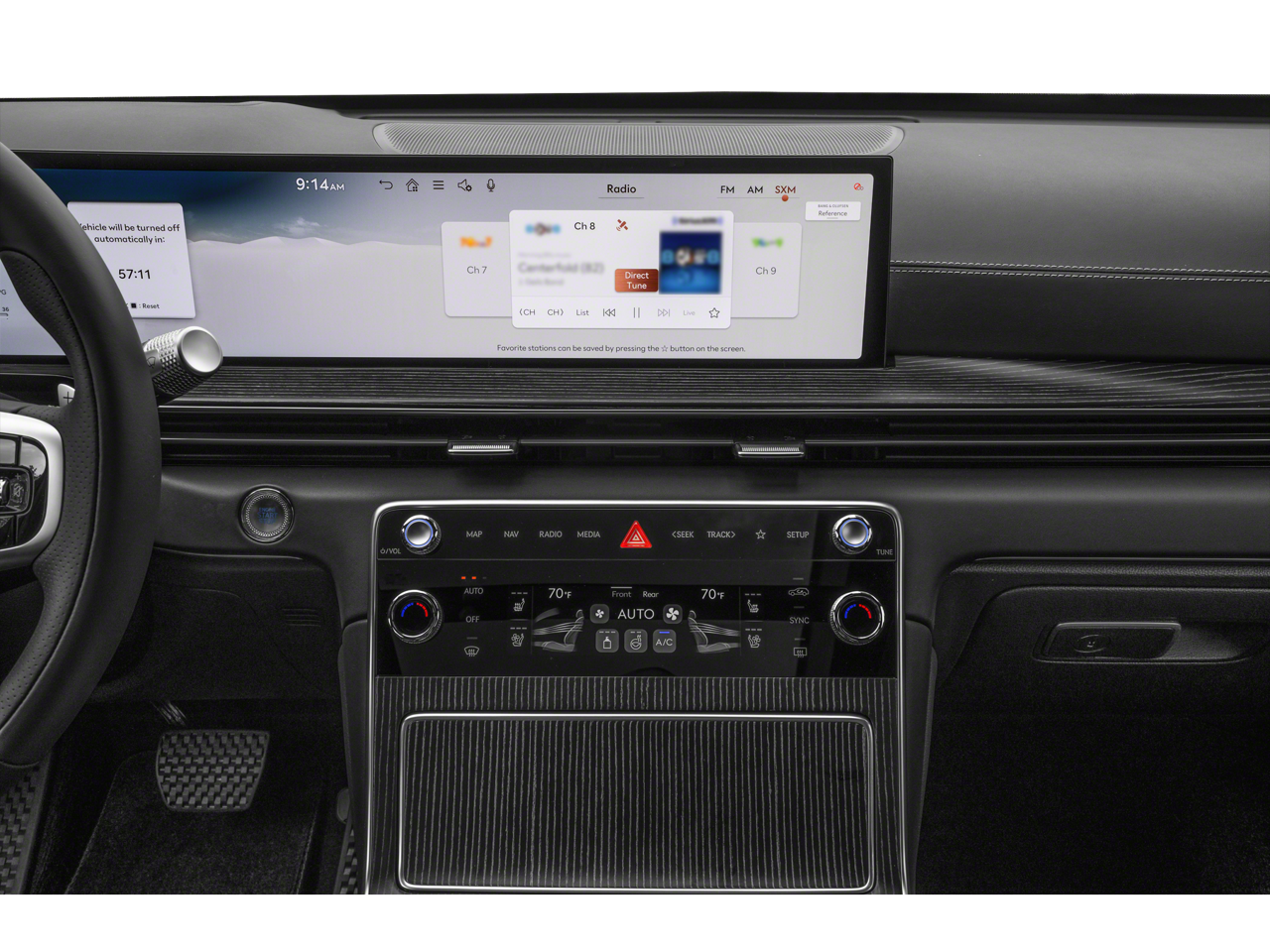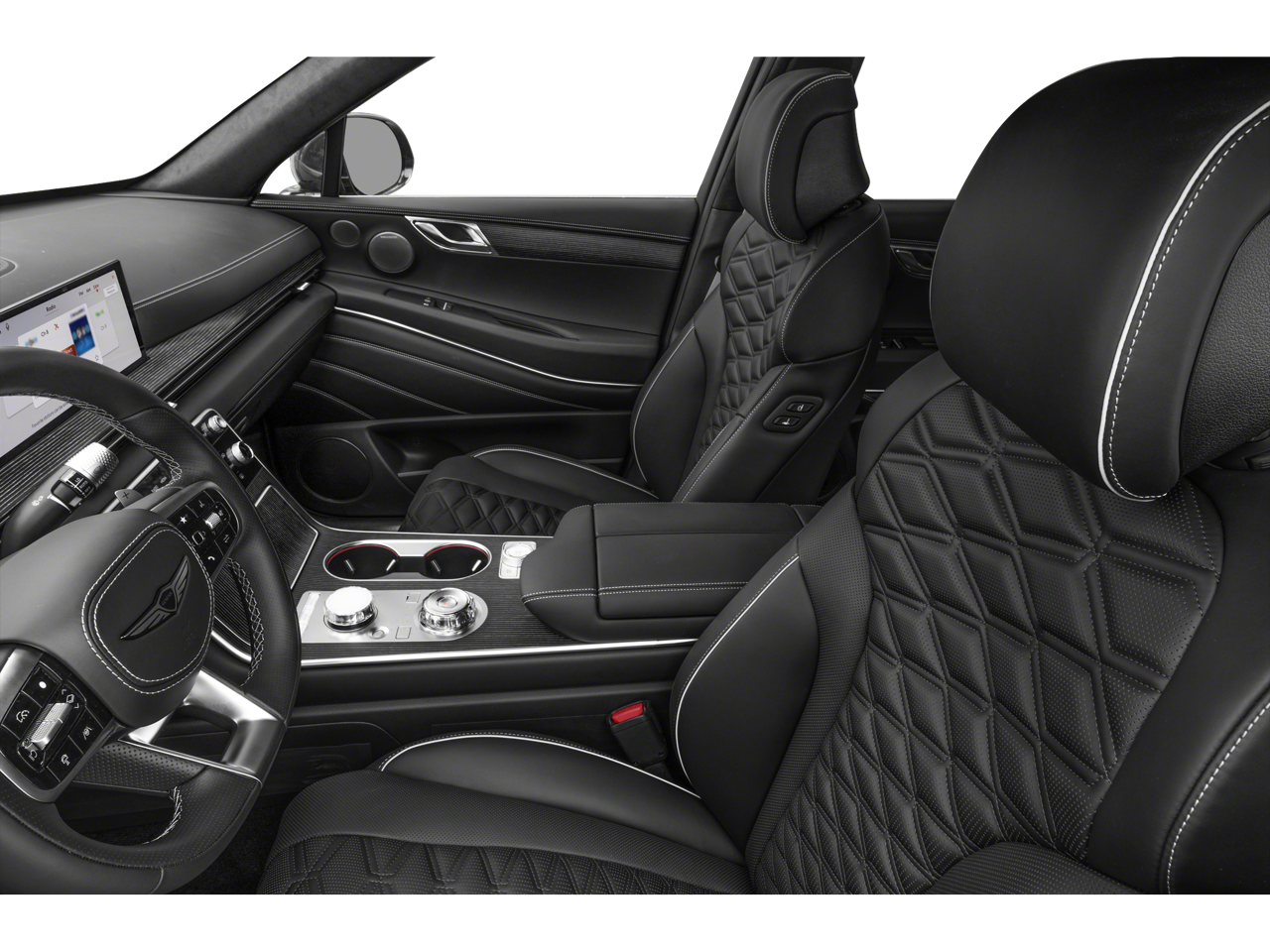 - Radio: AM/FM/HD Bang & Olufsen Premium Audio -inc: 27" OLED instrument cluster and navigation system, SiriusXM Radio w/90-day trial subscription (not available in AK or HI), Apple CarPlay and Android Auto (wireless late availability), Genesis connected services, Bluetooth® hands-free phone and audio streaming system, Wi-Fi hotspot and USB connectivity
